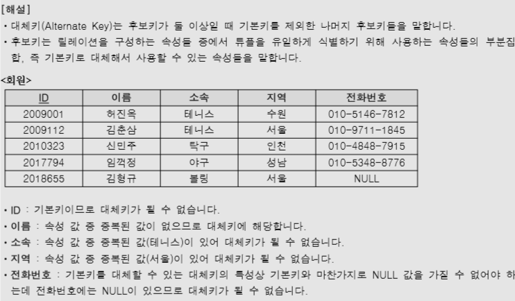4. 다음 <회원> 릴레이션에서 대체키에 해당하는 속성의 개수를 적으시오. 단 밑줄이 그어진 속성은 기본키로 지정된 속성이다.