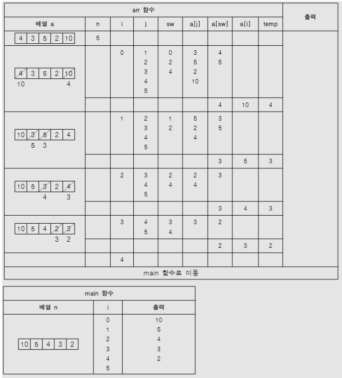 3. 다음 C 언어로 구현한 프로그램을 분석하여 괄호 ( )에 가장 적합한 답을 쓰시오.