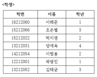 4. <학생> 테이블을 참고하여 다음의 각 질문에서 요구하는 답을 쓰시오.