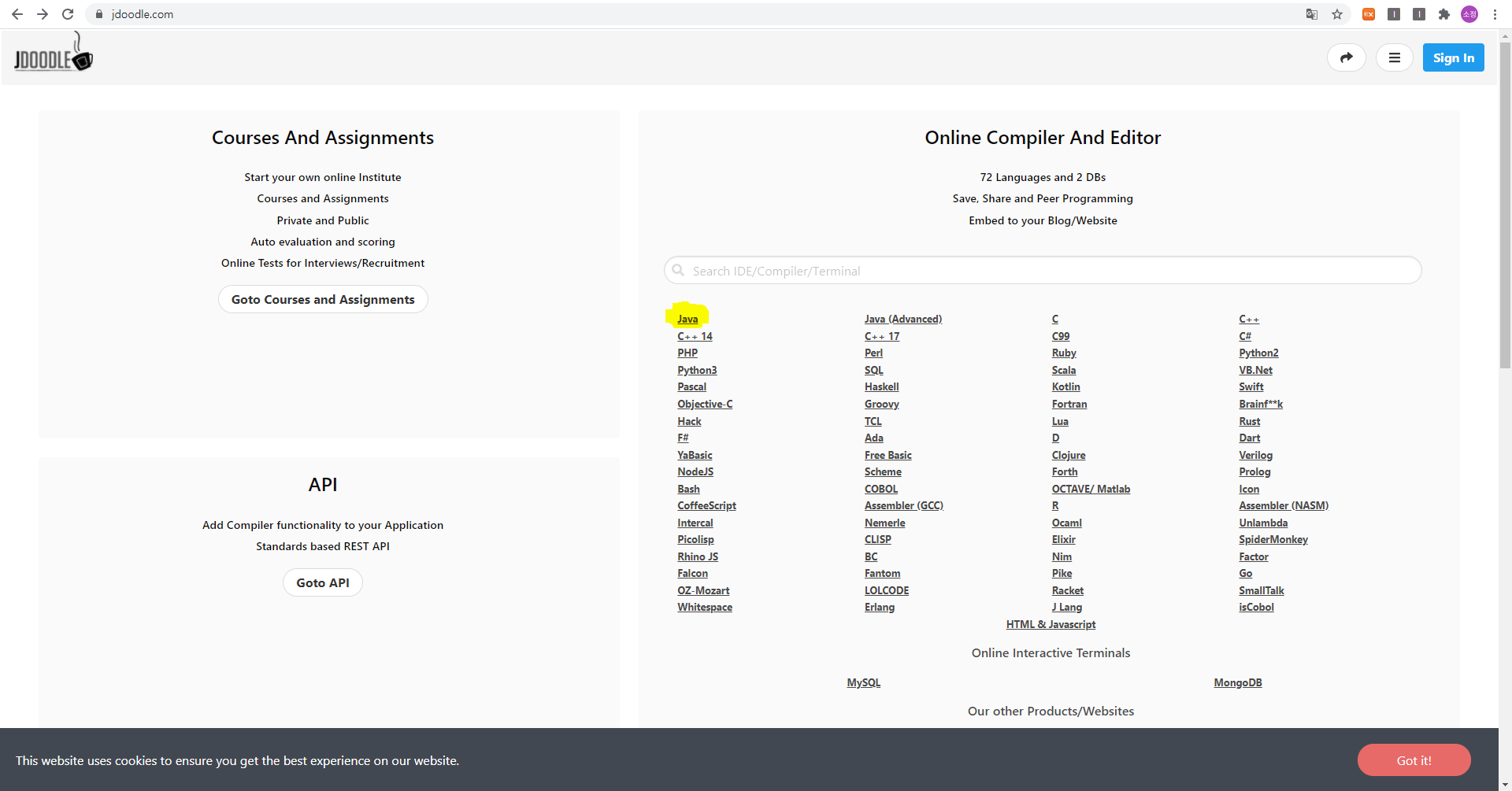- 'JAVA online editor' 검색