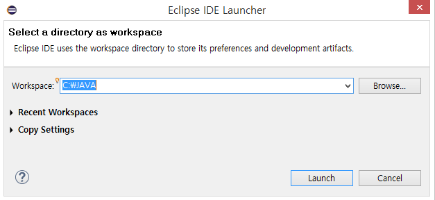 - Workspace : 내 프로젝트를 어디에 저장시킬 것인지 정하는 것