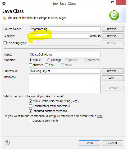 2. class OkJavaGoInHome 생성