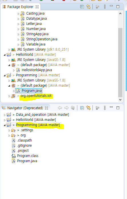 - 압축 풀고 org 폴더 복사 > Navigator의 Programming 패키지 클릭 후 붙여넣기