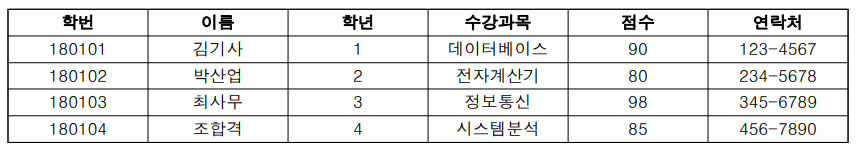 2. 다음 <처리 조건>에 유의하여 <학생> 테이블에 대한 알맞은 SQL문을 작성하시오.