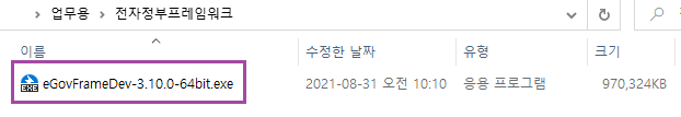 2. eGovFrameDev-3.10.0-64bit.exe 압축 풀기