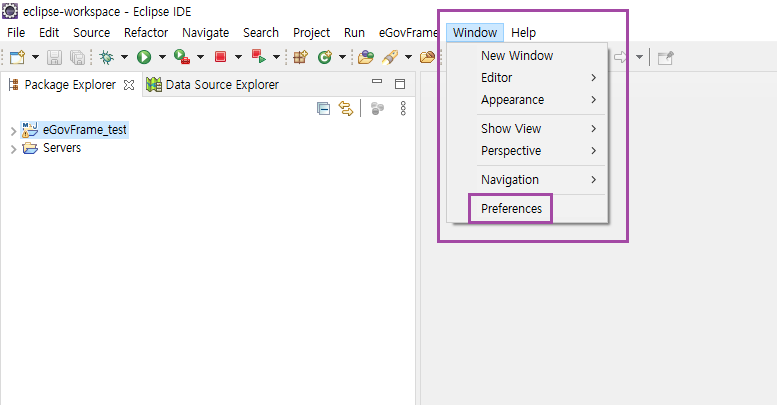 - 2번까지 정상적으로 완료됐으면 Window - Prefernces를 가서 Maven을 설정한다.