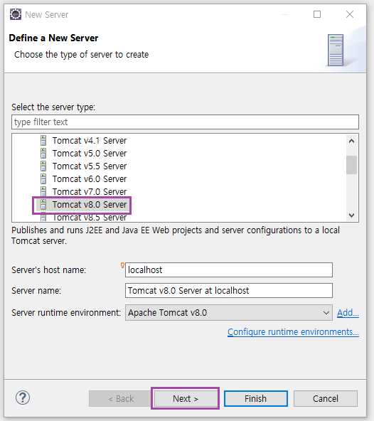 2. Target Runtime : OS에 설치되어있는 Tomcat 설정