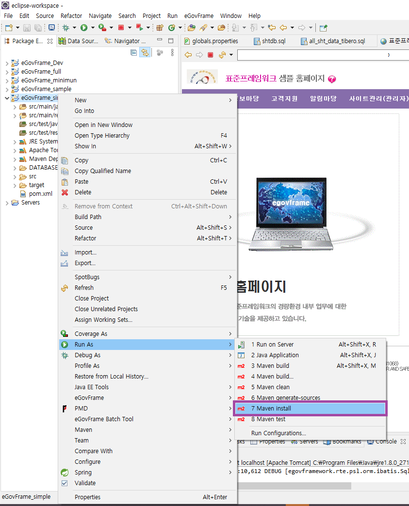 globals.properties 까지 올바르게 생성했다면, 프로젝트 우클릭 - Run As - Maven install 을 한다.