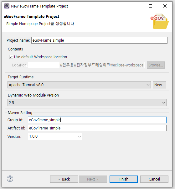 Project 생성에 대한 자세한 설명은 4탄 eGovFrame 개발 환경 Maven 환경설정 및 예제 프로젝트 생성 ( v3.10.0 )를 참고해주시기 바랍니다.