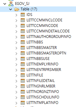 tibero 기준 테이블이 17개가 생성됐다면 다음 단계로 넘어간다.