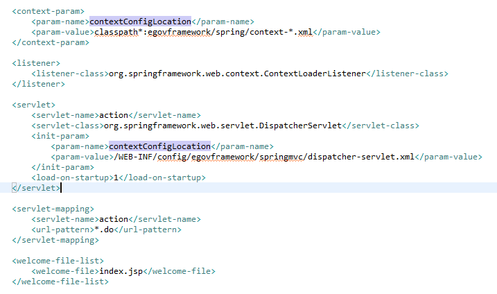 설정 파일은 context-*.xml 로 되어있는데 파일 위치가 classpath*:egovframework/spring/~으로 되어있는걸 확인할 수 있다.