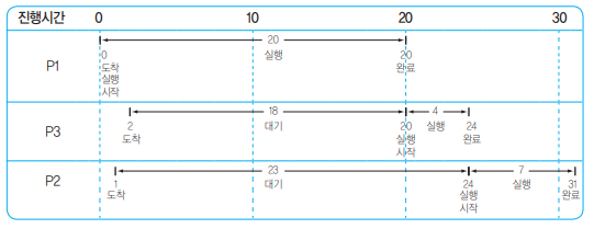 >> P2 대기 시간 : (P1 실행시간 - P2 도착시간) + P3 실행시간